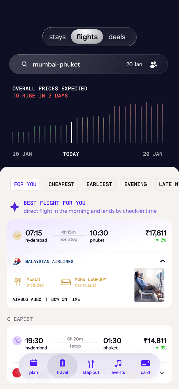 Satiating user curiosity when exploring where to stay and comforting their anxiety when checking flights for a delightful travel booking experience