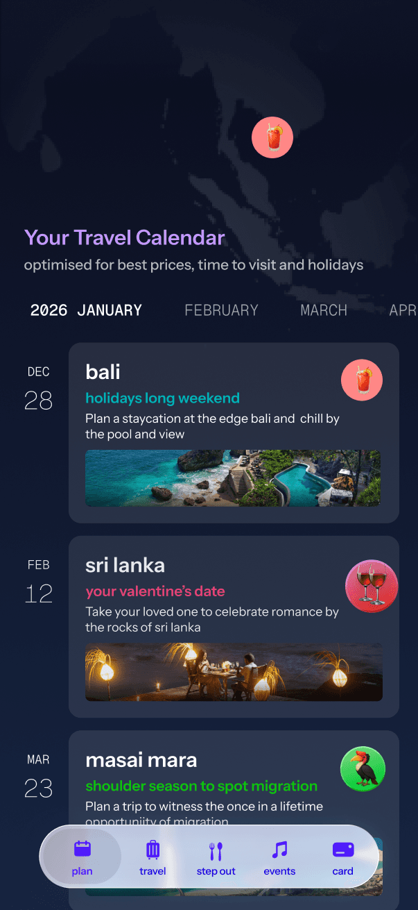 When people don't know where to go yet, help them know where and when to go based on long weekends, events and occasions